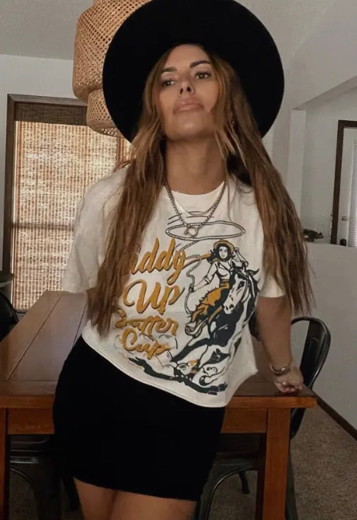 Hold on tight cowgirl these graphic designs are made for wild hearts and wide open skies. Bring big western energy with bold graphics, fierce female spirit and a little country sass. Whether you’re ropin’ at sundown or ridin’ into Amarillo by mornin’ this tee’s got you lookin’ fire from dusk to dawn. Soft cotton comfort with a vintage feel.